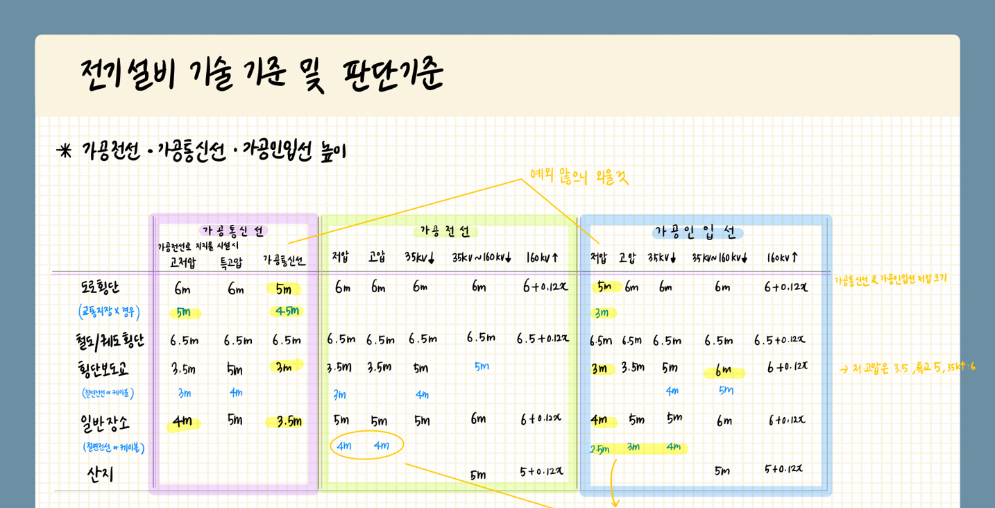 전기설비 공부하면서 제일 헷갈리는 것 중 하나인 가공전선, 가공통신선, 가공인입선 높이 이격거리