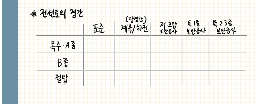 경간도 외우기,,, 특 1종 보안공사는 목주랑 A종 사용 불가,,, 이게 왜 안 외워지니ㅣ
