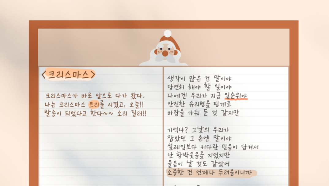 이번에는 저번 크리스마스 버전 굿노트 필기 속지보다 더 맘에 들고 깔꼬미하게 나왔으니까 많이 써주시면 좋겠습니다
