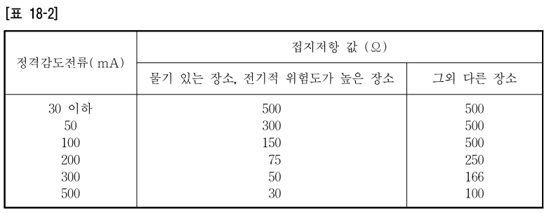저압전로에서 그 전로에 지락이 생겼을 경우에 0.5초 이내에 자동적으로 전로를 차단하는 장치를 시설하는 경우 제1항의 규정에 불구하고 제3종 접지공사와 특별 제3종 접지공사의 접지저항 값은 자동 차단기의 정격감도전류에 따라 표 18-2에서 정한 값 이하로 하여야 한다 (접지저항값 X 정격감도전류 = 15옴_)